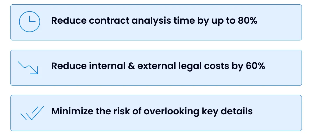 - Generic contract analysis tools with predefined fields that don’t capture the nuances of your deals.