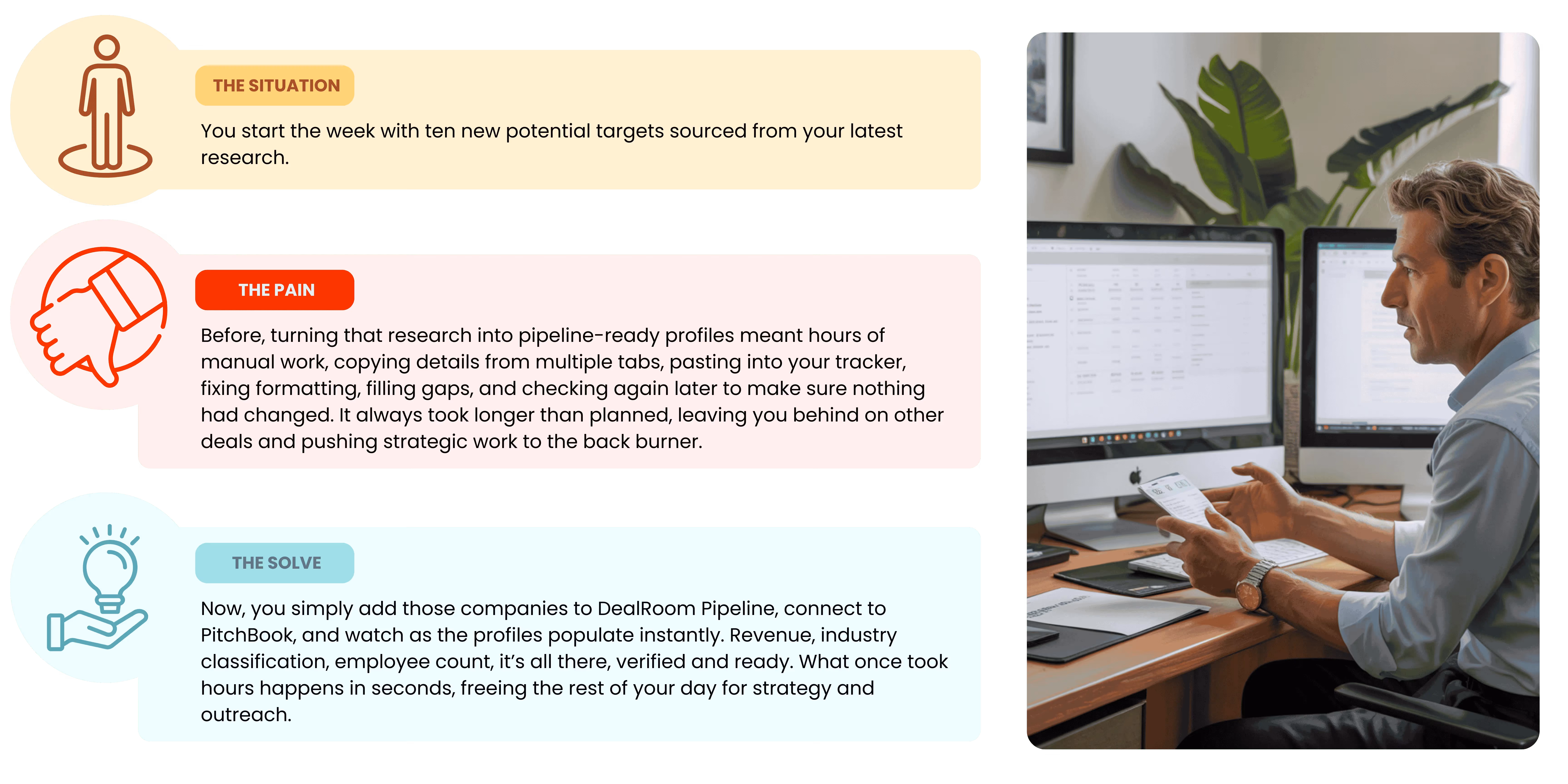 With the new DealRoom x PitchBook product integration, that entire bottleneck disappears.