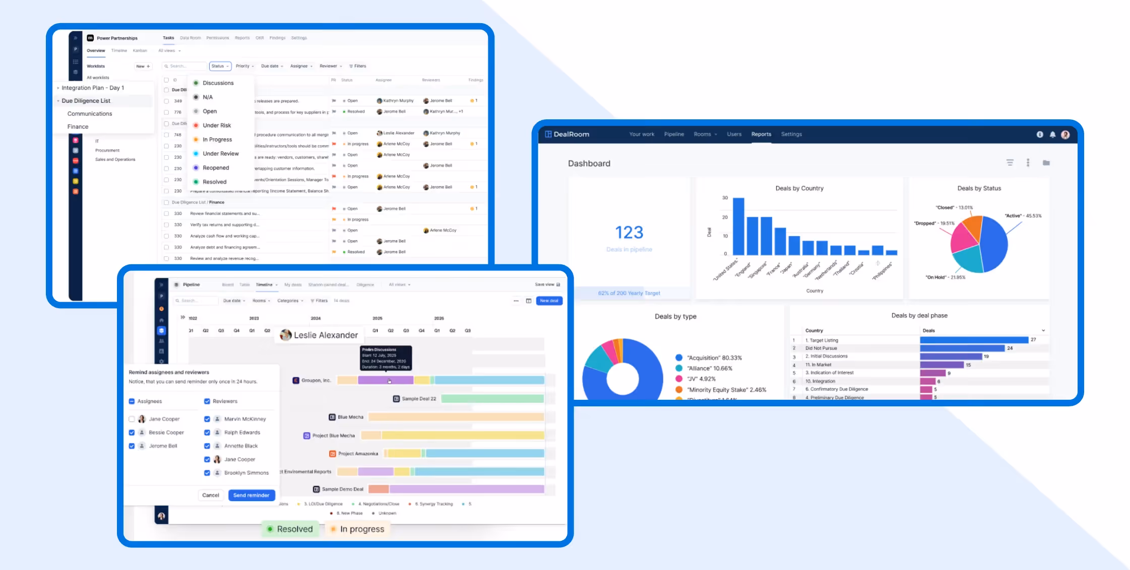 DealRoom M&A Platform also includes project management tools that work with all the modules mentioned above. To explore additional functionalities and discover more hidden features, click here.