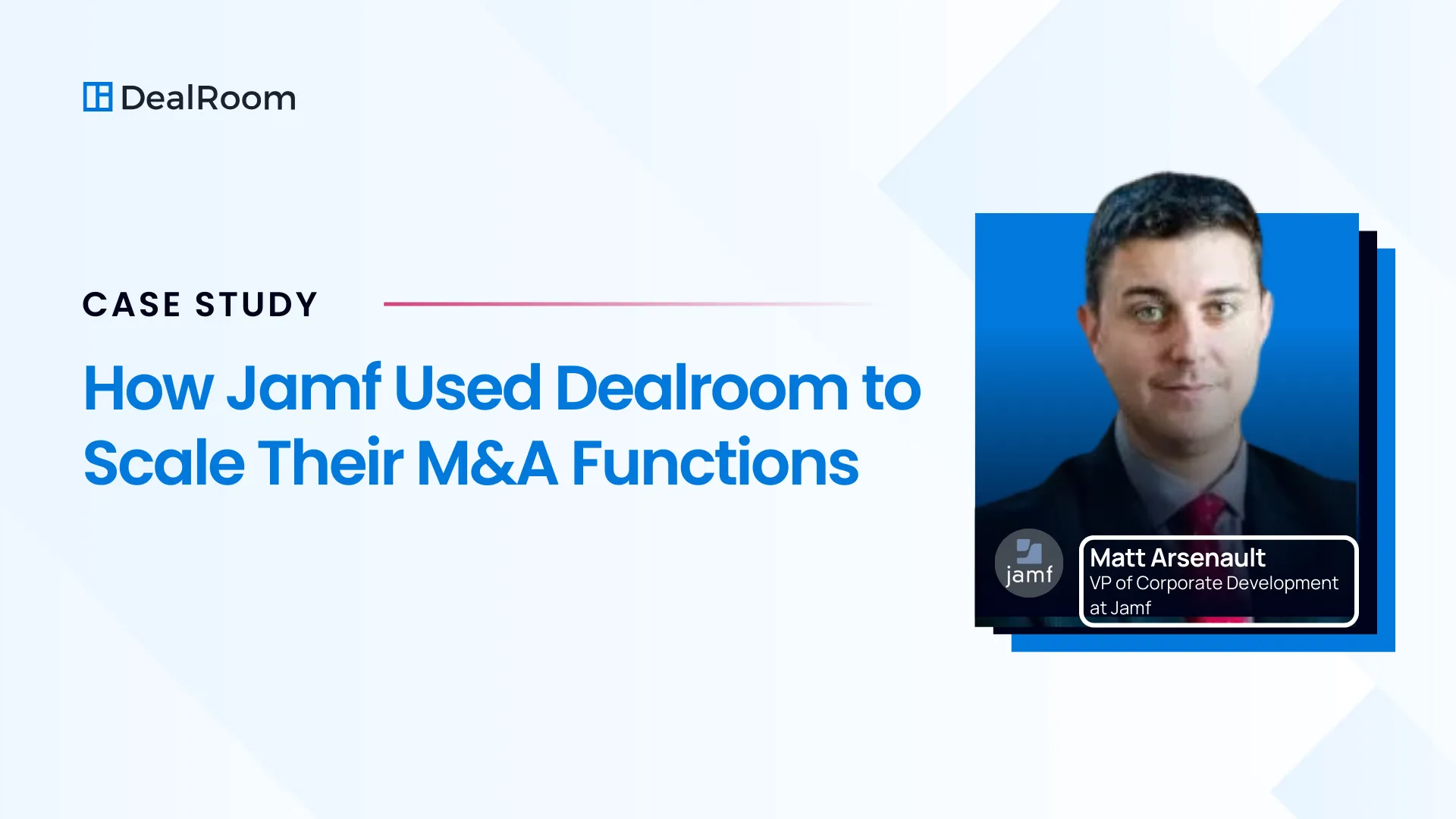 "Before DealRoom, opportunities were left on the table because we didn't track and follow up appropriately, nor did we have the time and space to build reports to give to executives." –Matt Arsenault, VP of Corporate Development at Jamf