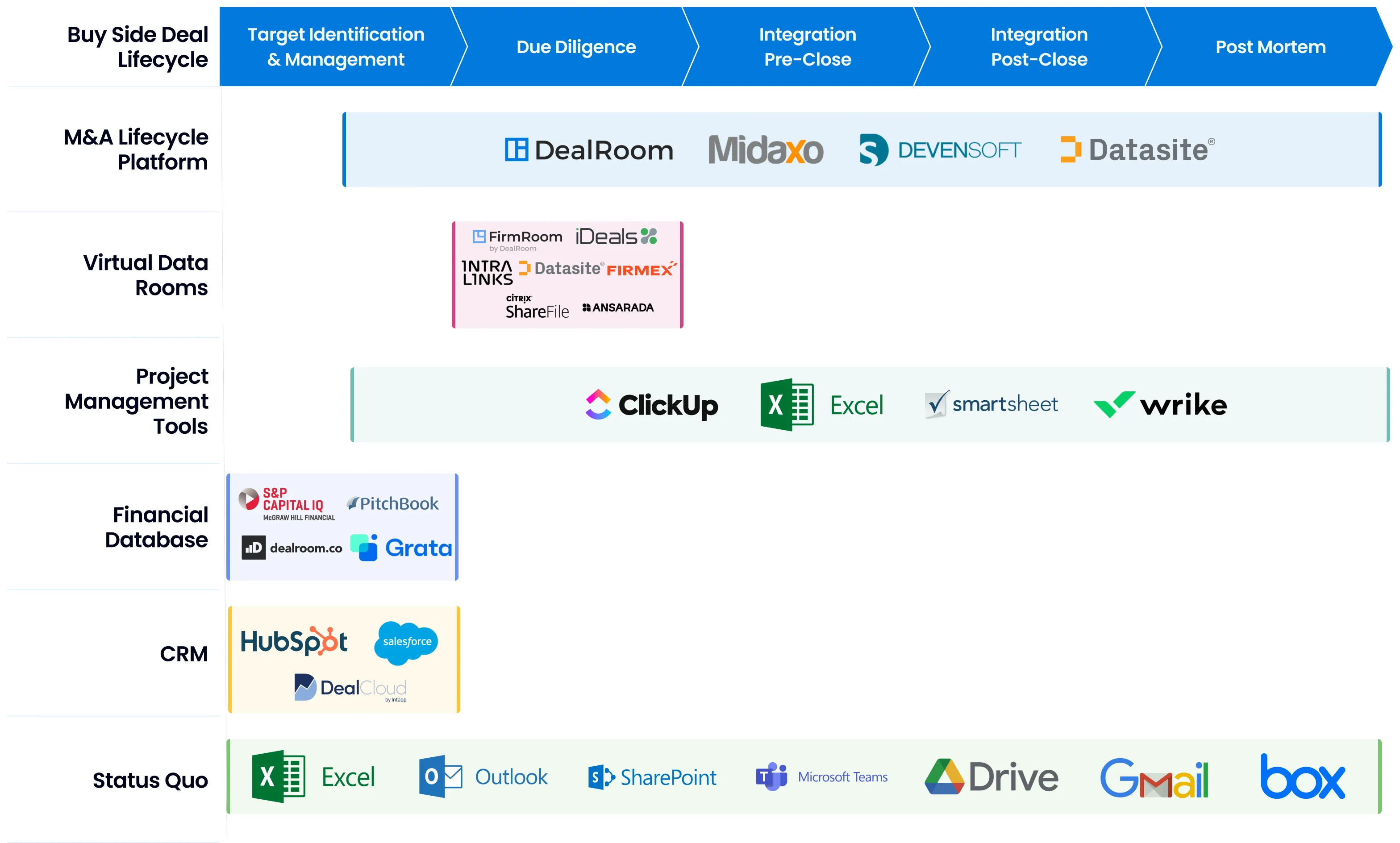 Luckily, there are many tools and software platforms that promise to do just that.  Unfortunately, not all tools offer the same value, and it’s important to understand the landscape in order to make the right technology buying decisions for your company.  This blog seeks to provide an overview of the M&A technology landscape so you can choose the best tools for your company's unique goals.