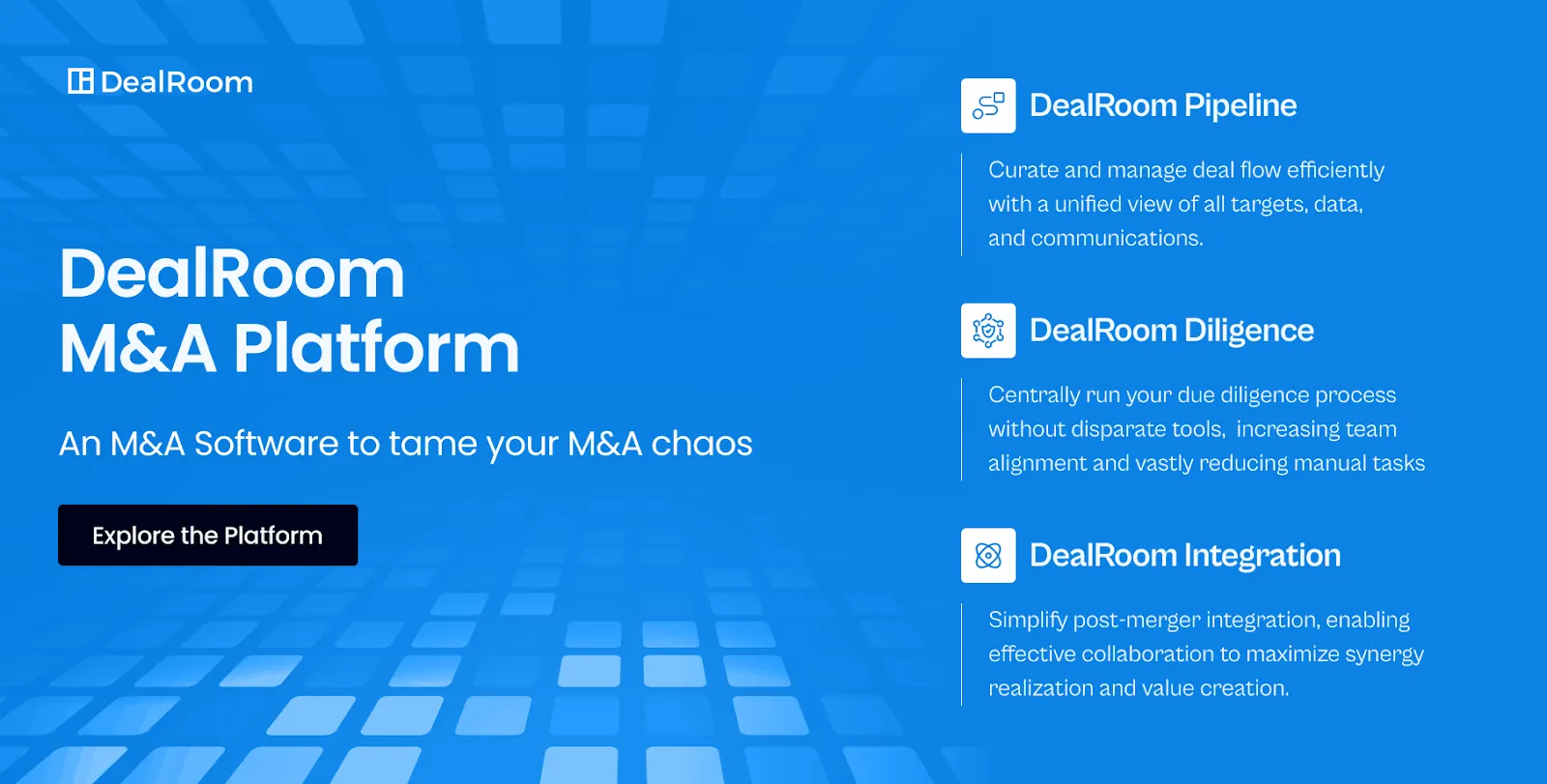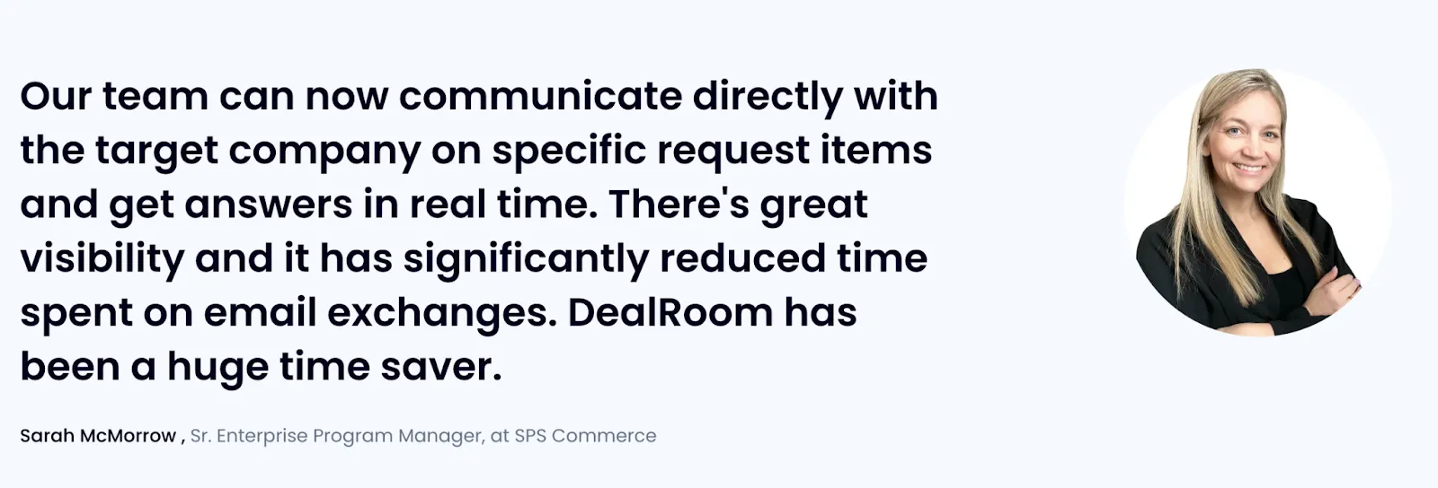 Instead of managing everything through emails and Excel trackers, you bring the seller into the DealRoom M&A Platform.