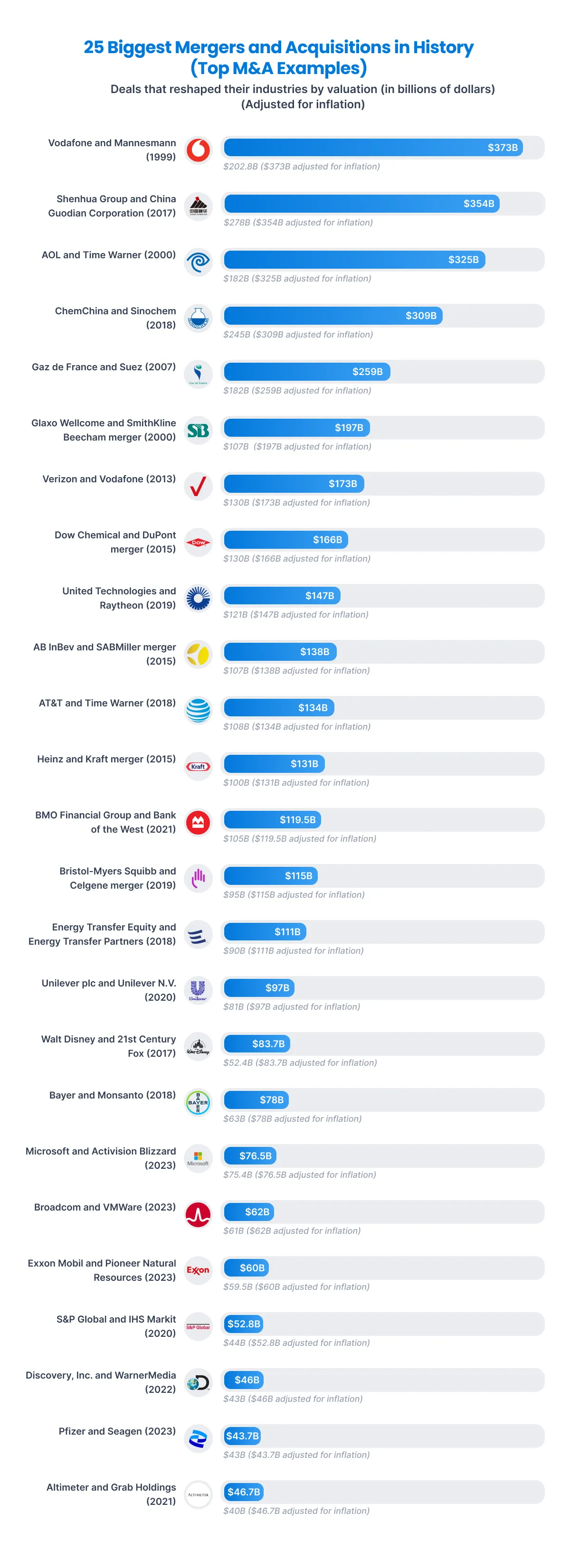 With that in mind, let's take a closer look at 35 companies that recorded the largest mergers and acquisitions in history.