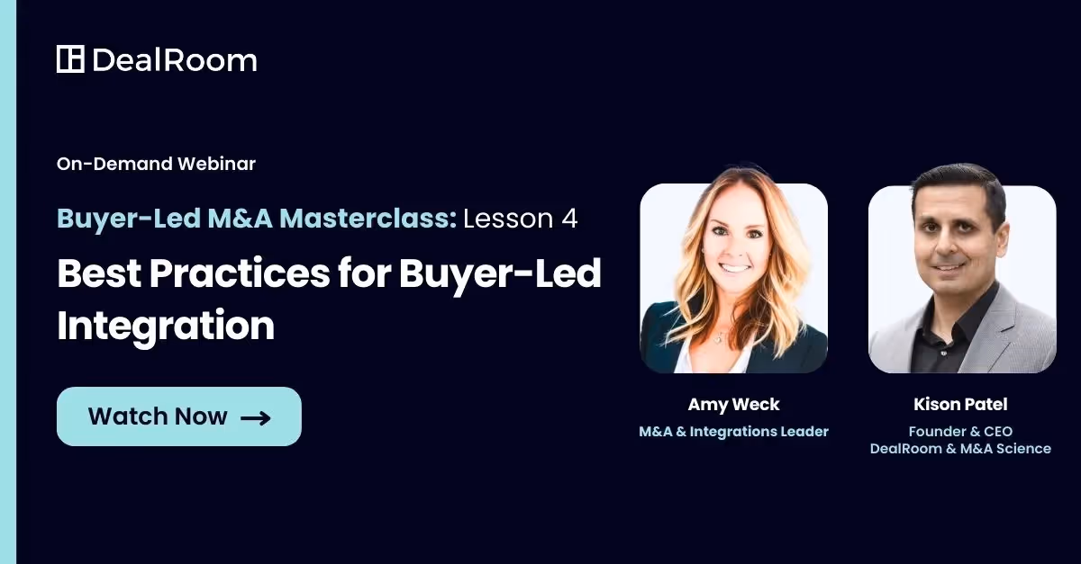 Discover first-hand how DealRoom can transform your M&A process. Book a demo to see how easy it is to manage deals, streamline due diligence, optimize integration, and more all in one platform.