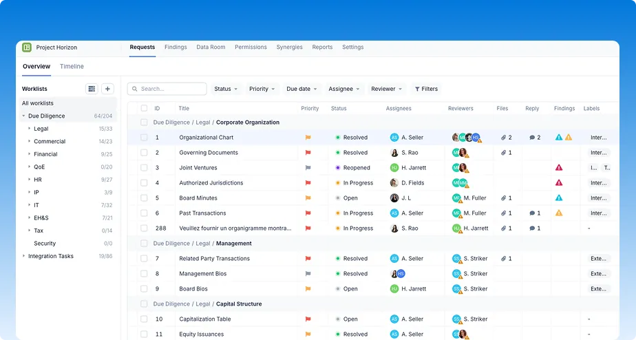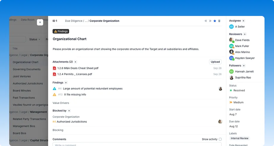 Automate repetitive tasks, manage multiple rooms, assign reviewers, and connect everything-requests, findings, and data, into one seamless workflow.