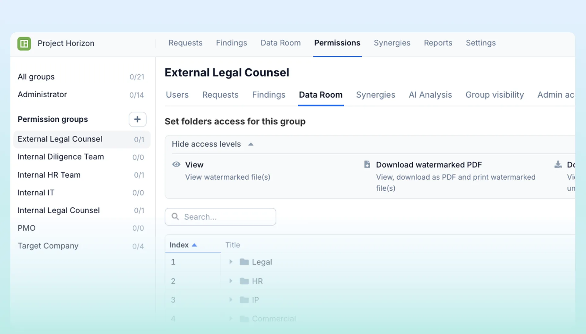 Set precise access levels by room, folder, or request - so the right people see only what they need, when they need it.