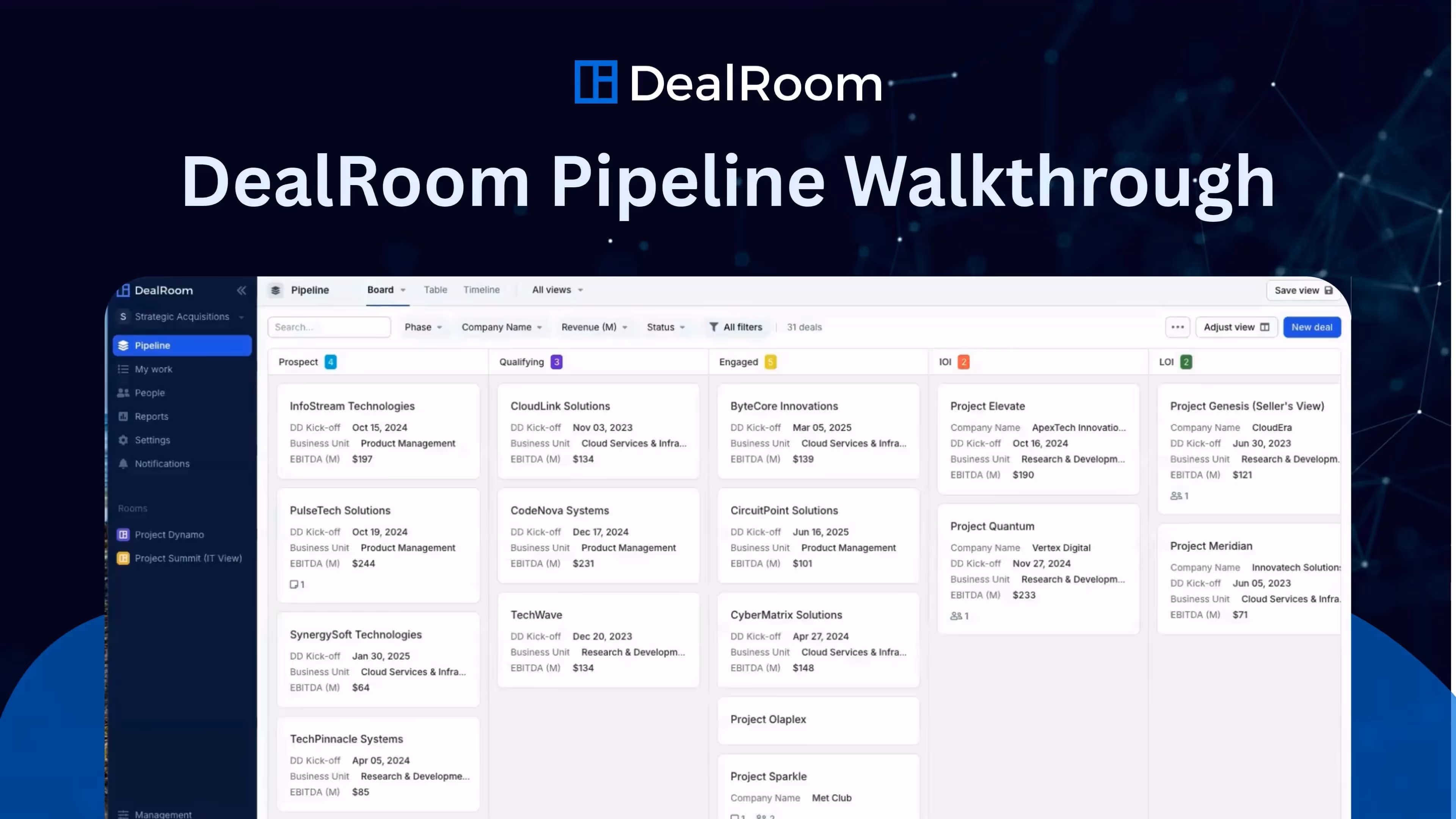 Access a collection of demo videos, customer-led walkthroughs, and best practices to see how DealRoom optimizes every stage of the M&A lifecycle.