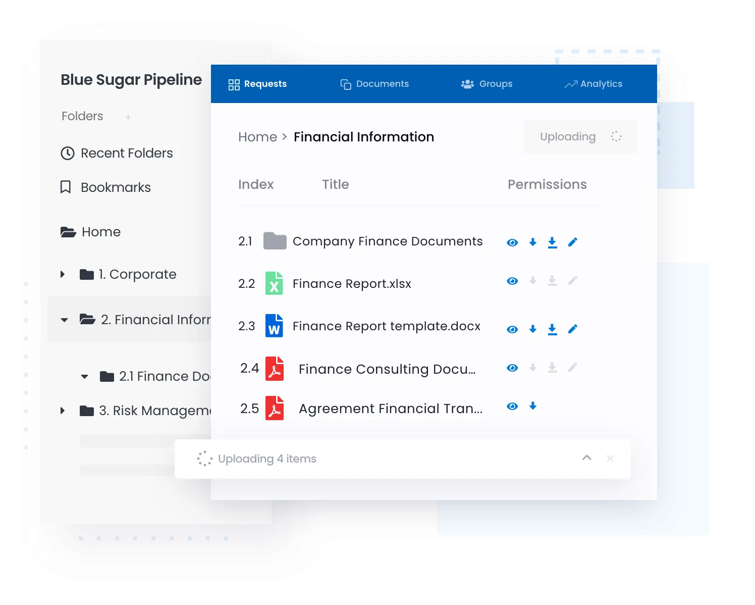 While most M&A project management tools are primarily designed for internal use, DealRoom also facilitates requests with the target company and various third parties all in one process.