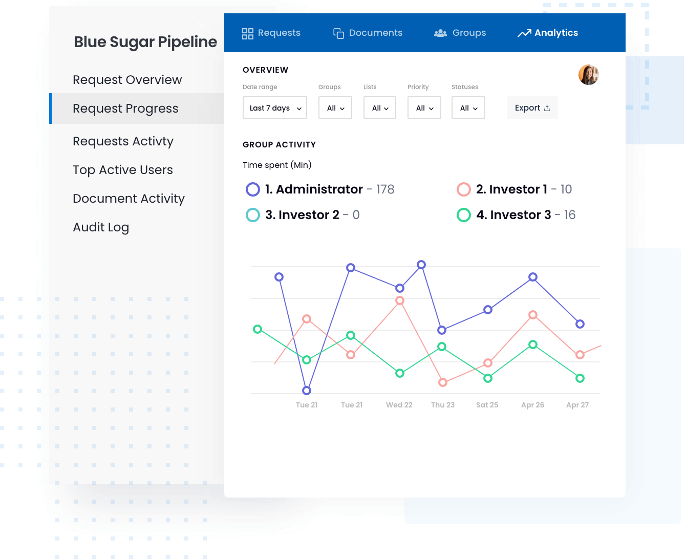 Assign, complete, and track diligence requests without having to use an Excel tracker.