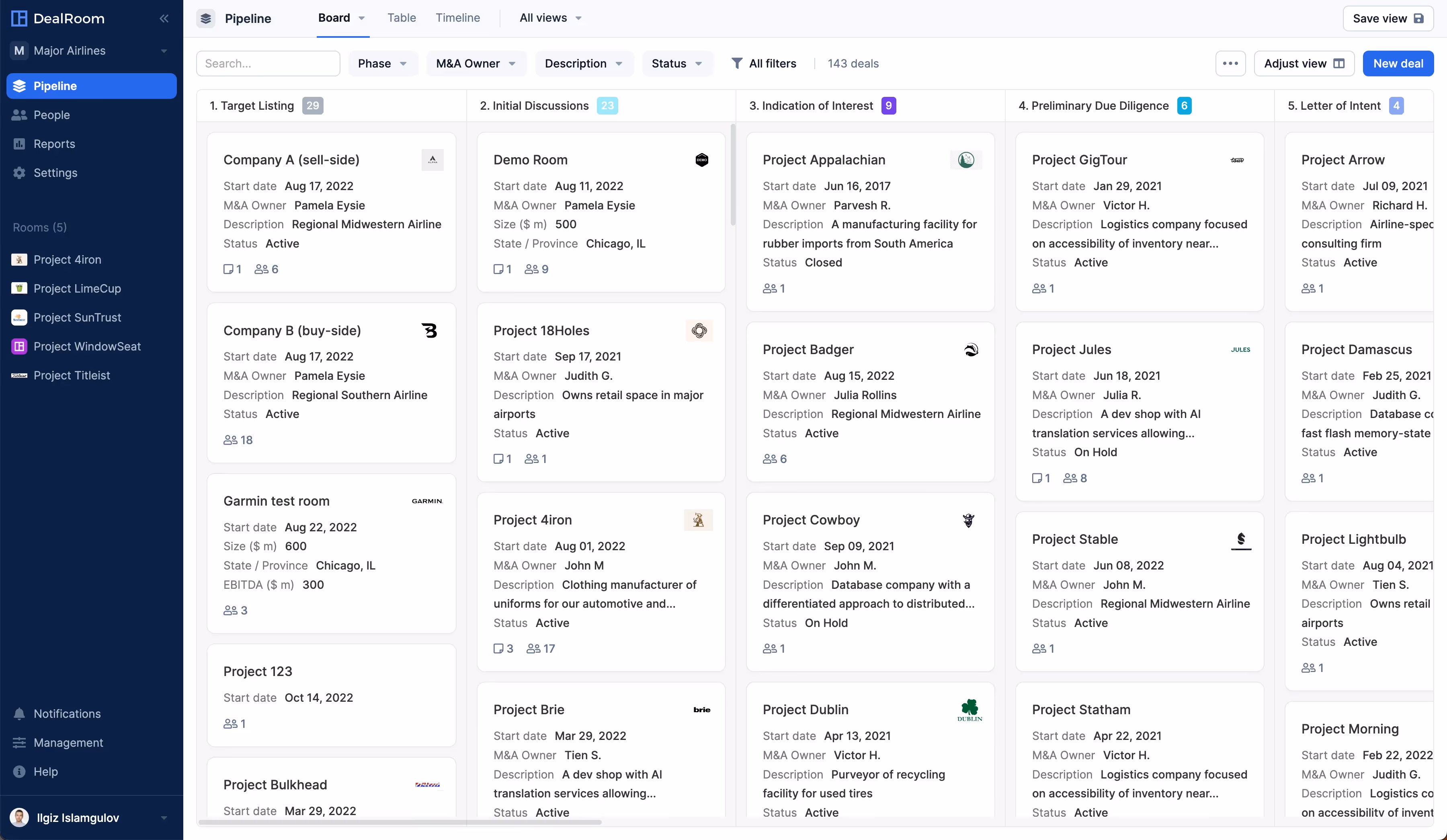 Switch between different product areas such as rooms, pipeline, notifications, and personal account settings faster. Everything is organized in a new left-side navigation menu.