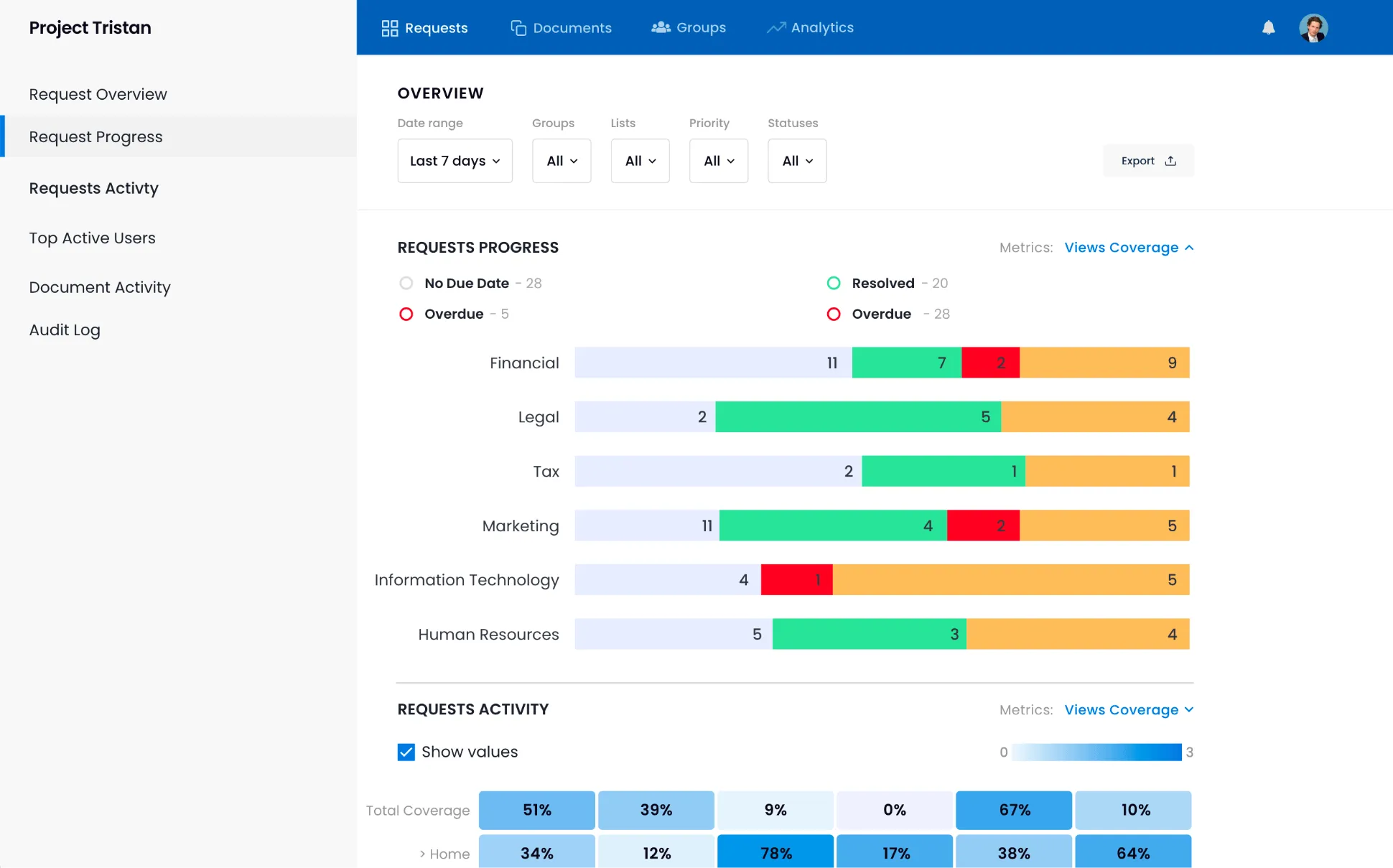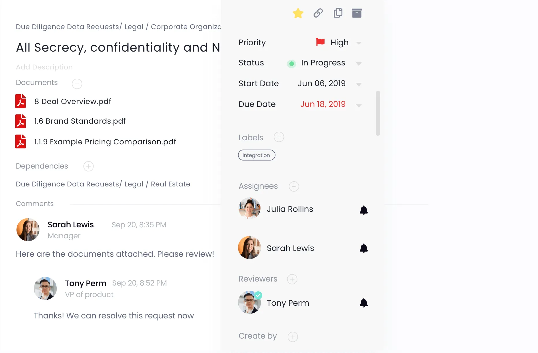Streamline your due diligence process and complete requests in half the time with our innovative project management features.