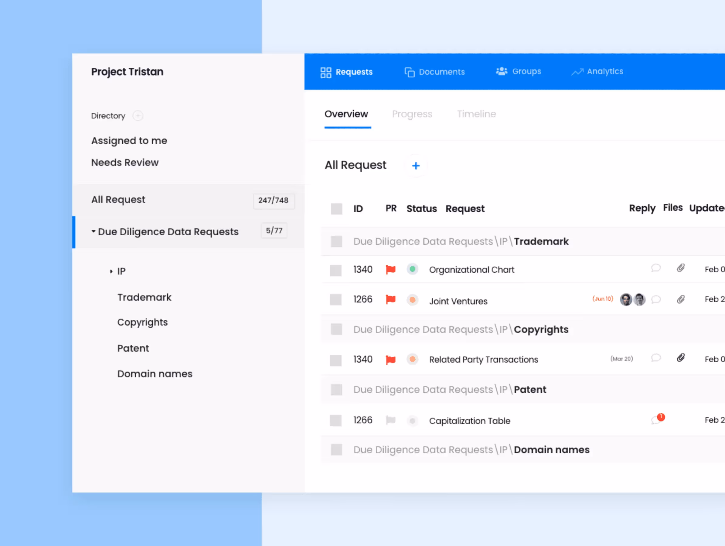 Accurately assess the value of intellectual property during a transaction with our pre-built due diligence template. Book a playbook demo to explore — schedule a call with us and we will reach out to help you get started.