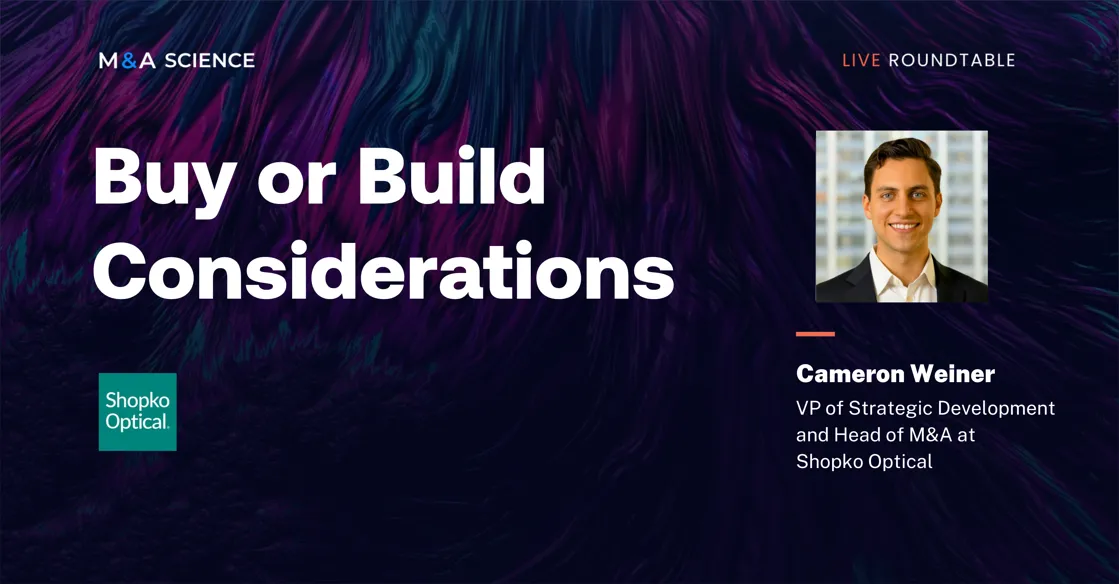 To buy or build, that is the question! In this interview with Cameron Weiner, VP of Strategic Development, Head of M&A at Shopko Optical, he shares how his team determines whether to buy or build a business.
