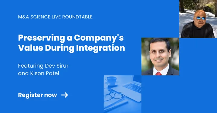 In this interview, Kison will speak with Dev Sirur of Intel about how to preserve a company's value during integration. Dev is Director of M&A Integration at Intel and has over 23 years of experience at the company. Together, Kison and Dev will discuss how to protect smaller companies during M&A.