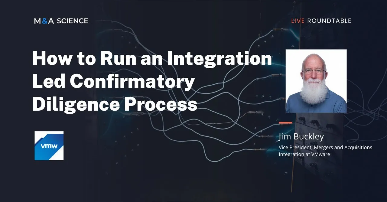 In this interview, Jim Buckley, Vice President, Mergers and Acquisitions Integration at VMware, talks about how to run an integration-led confirmatory diligence process.